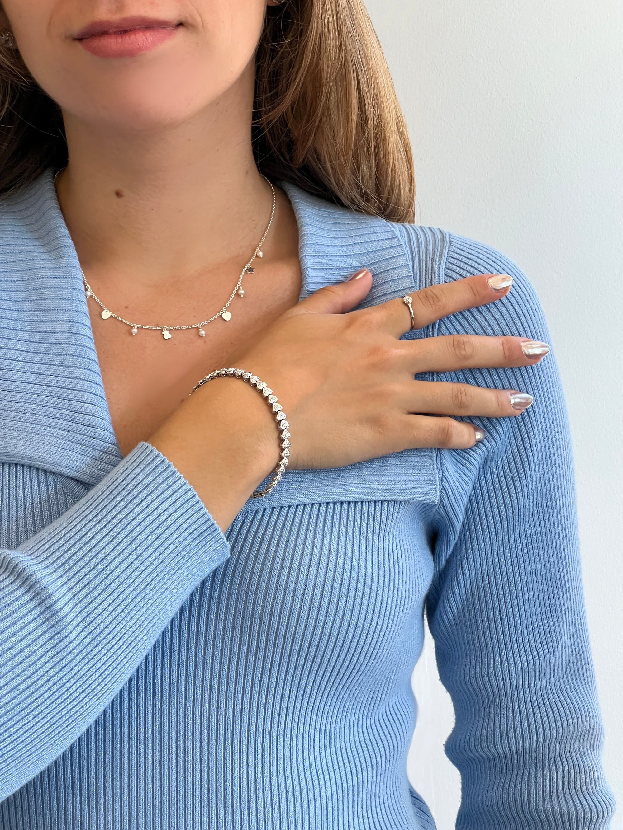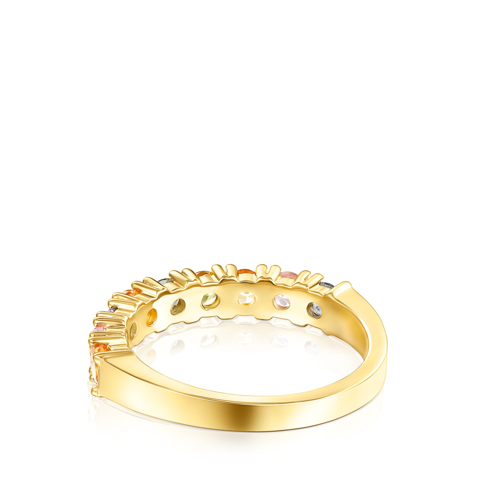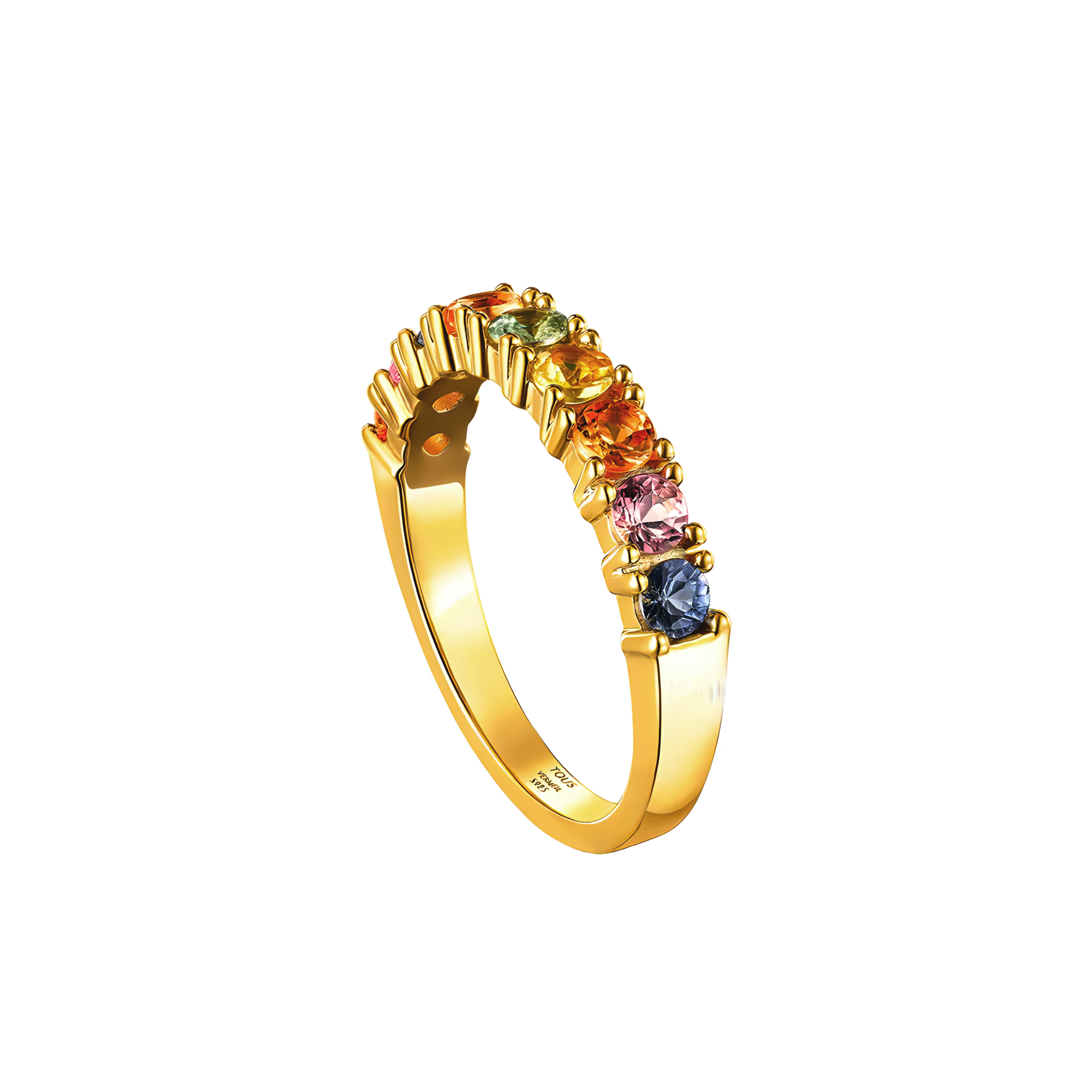 TOUS Vermeil Silver Half Alliance Ring with Glaring Multicoloured Sapphires