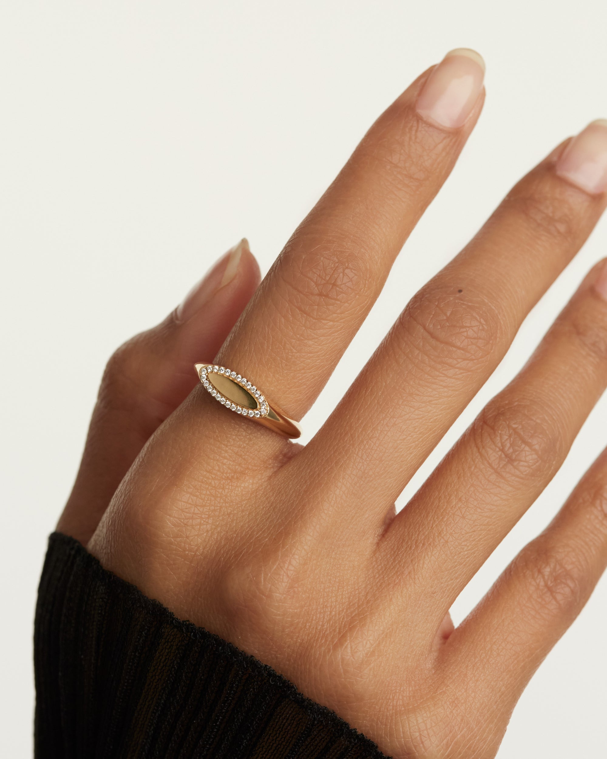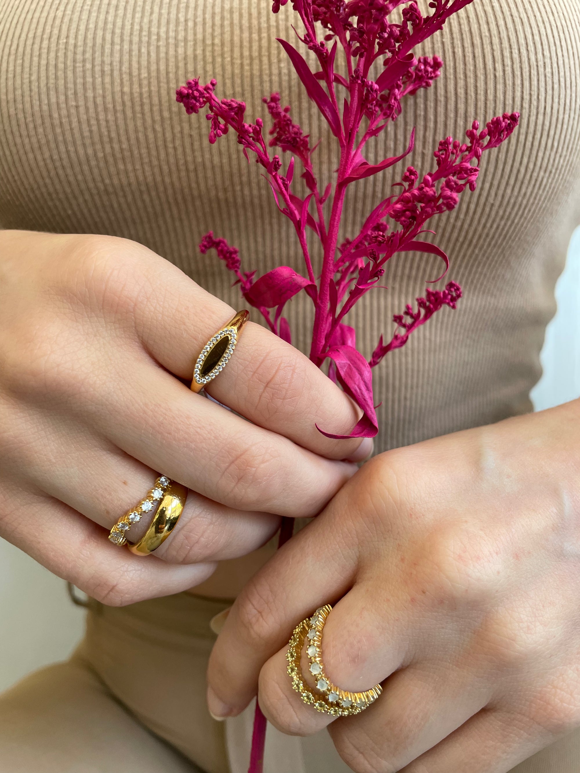 18kt Gold Plated Silver Pavé Semi Dome Ring