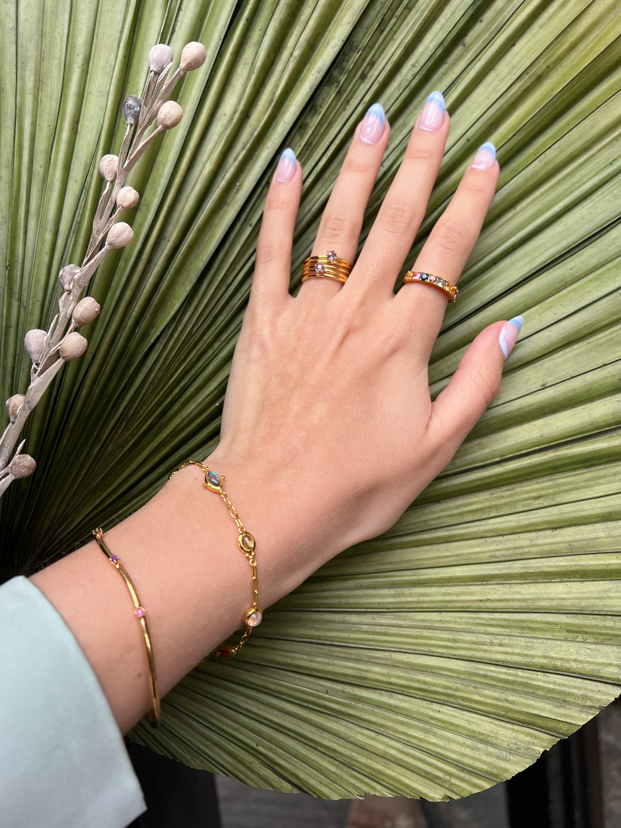 Les Néréides Pink and Yellow Stones You and Me Adjustable Ring