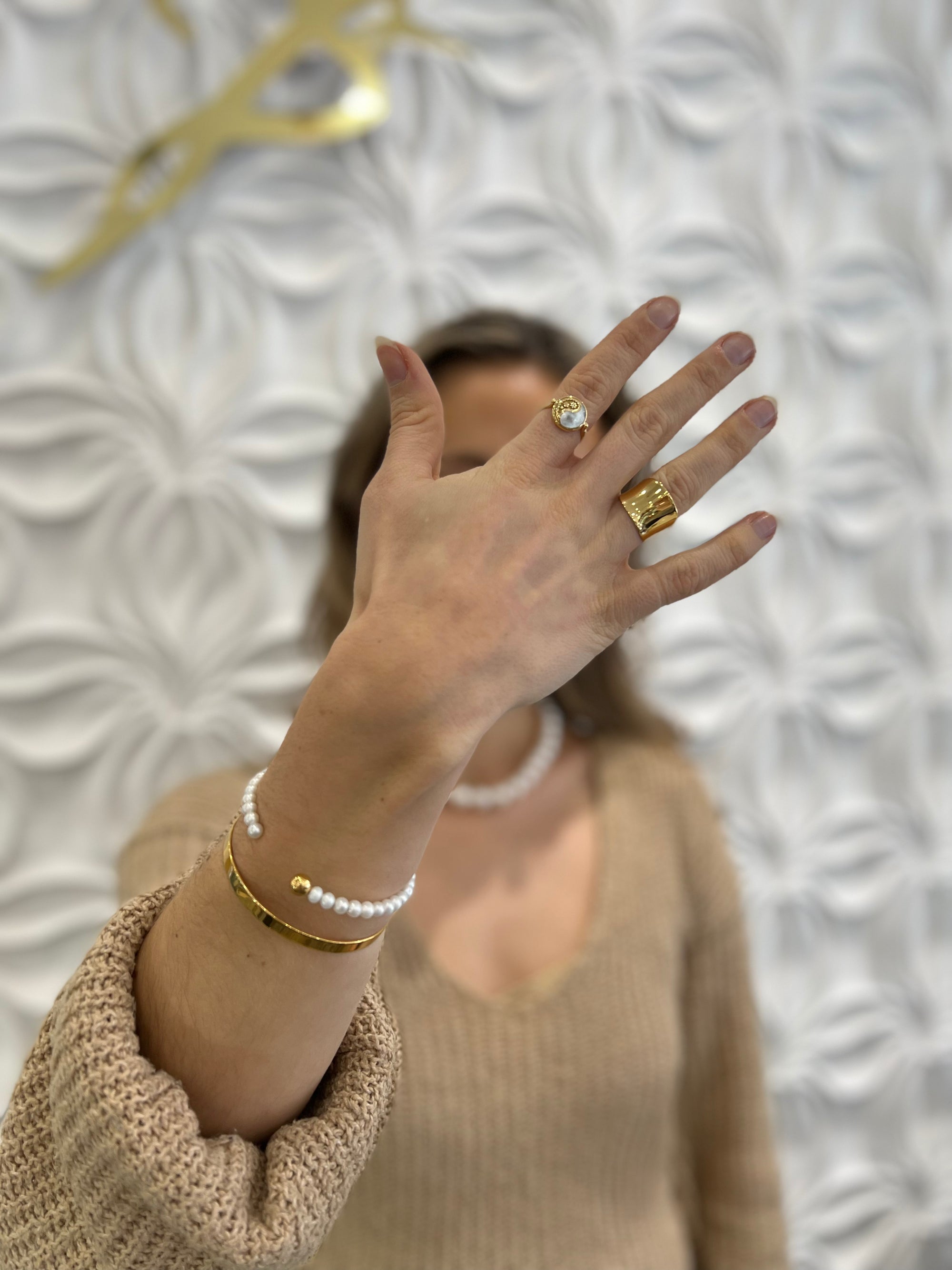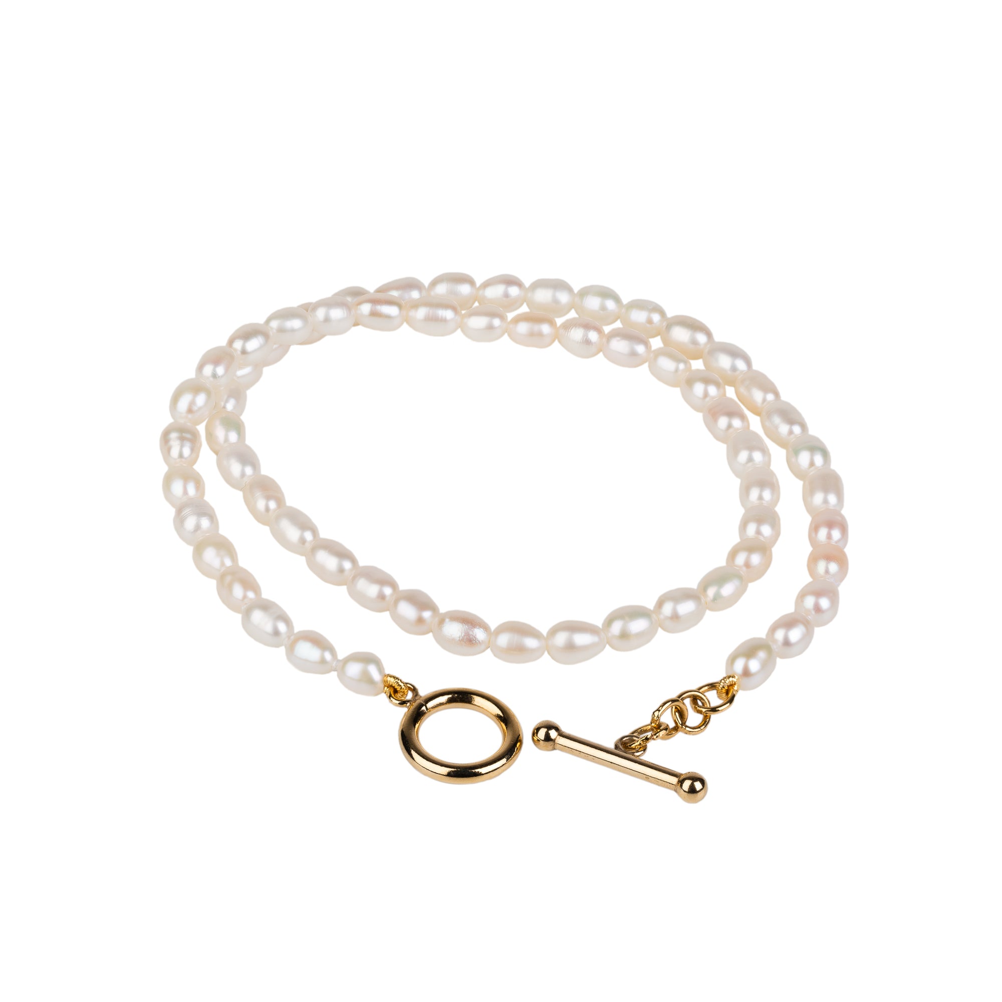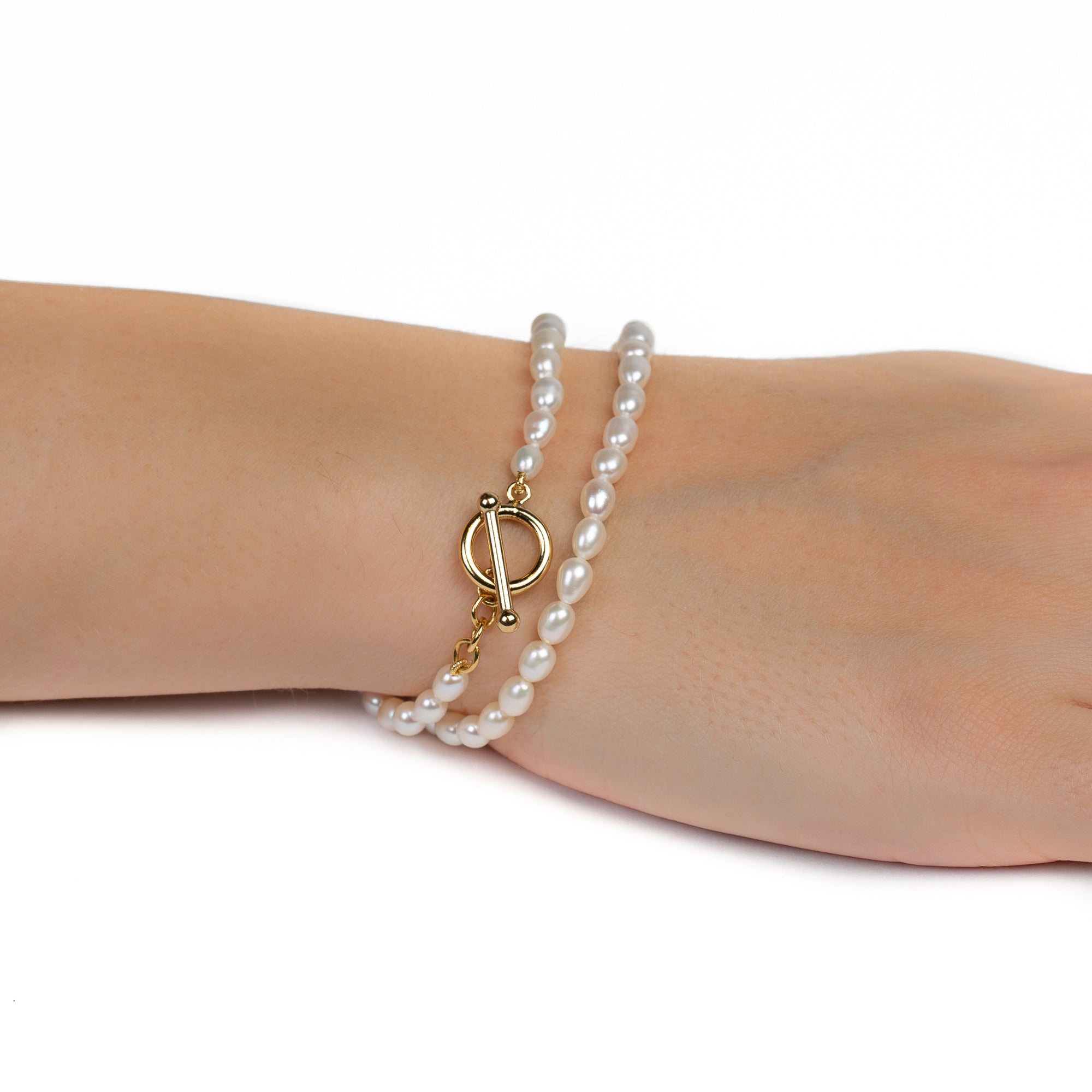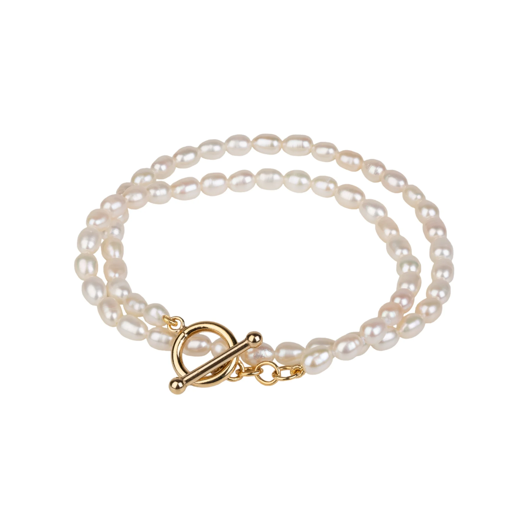 Double Wrap Pearl Bracelet with Gold Plated Toggle