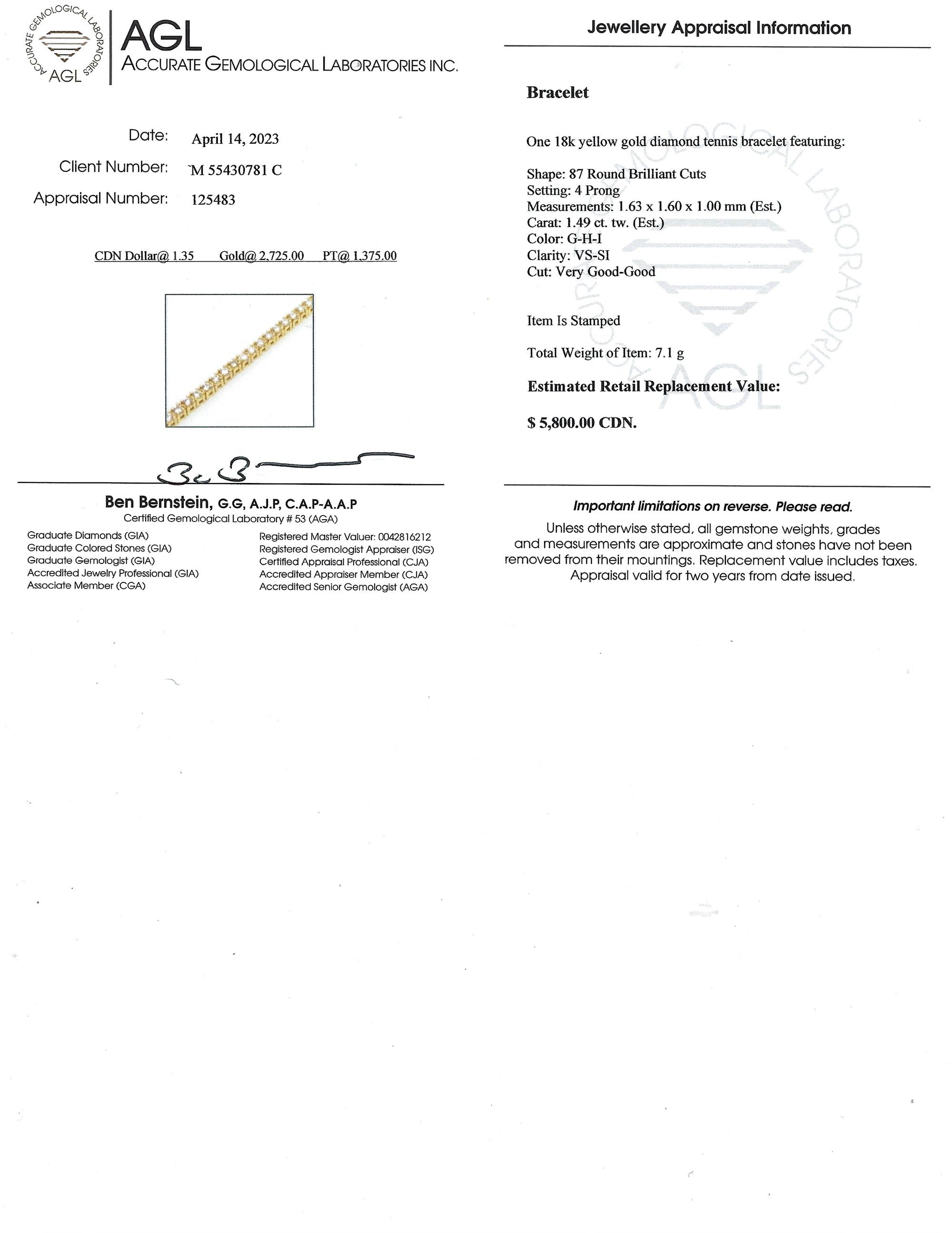 Tennis Bracelet in 18kt Yellow Gold & Diamond
