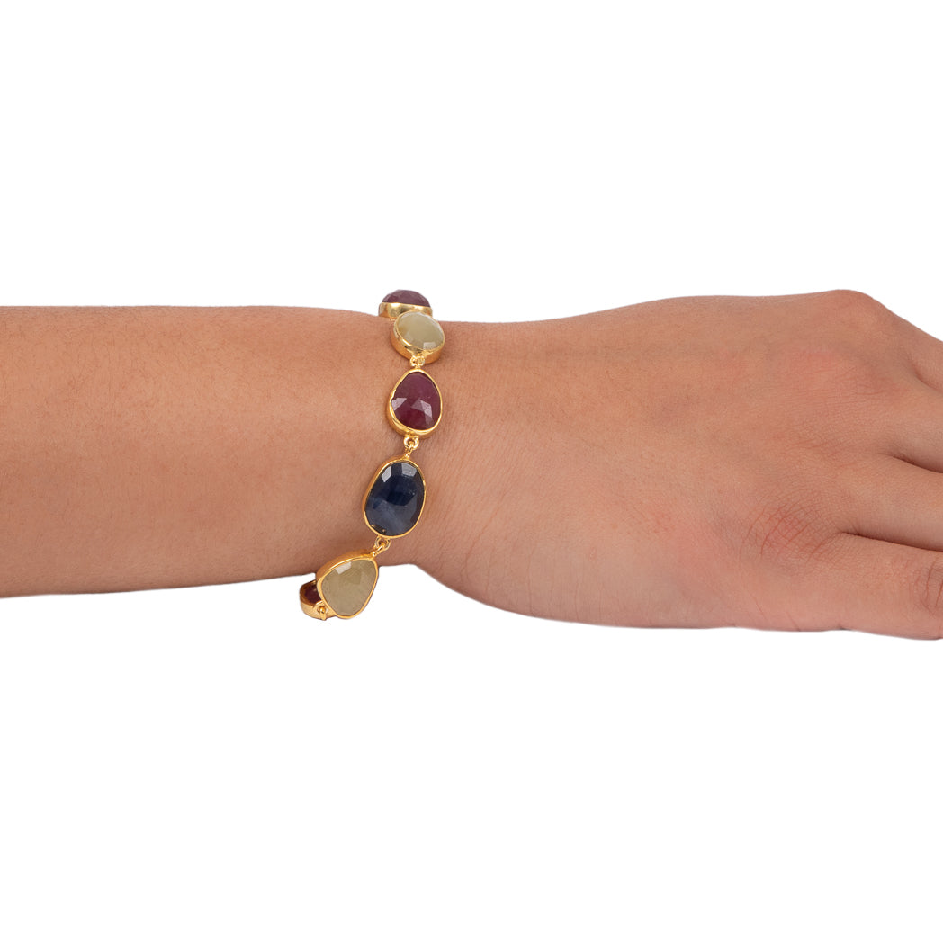 18kt Gold Plated Silver Small Fancy Gemstone Bracelet