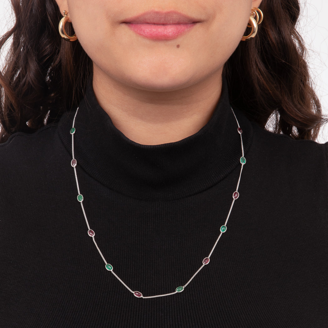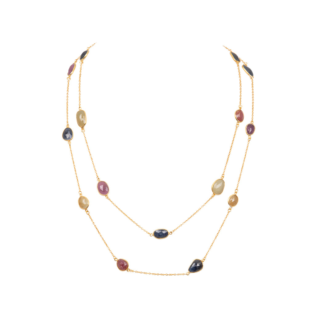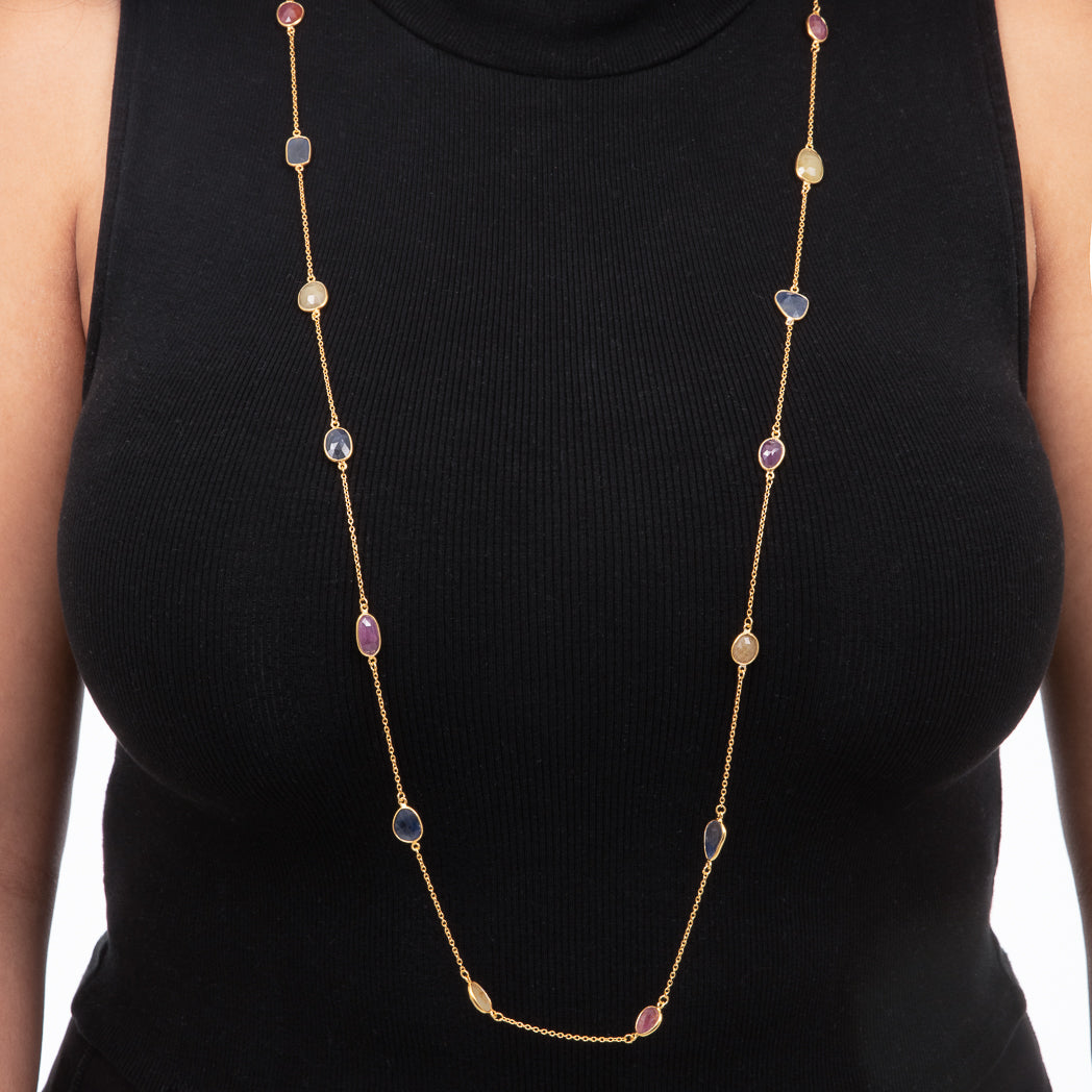 18kt Gold Plated Silver Precious Gemstone Opera Length Necklace