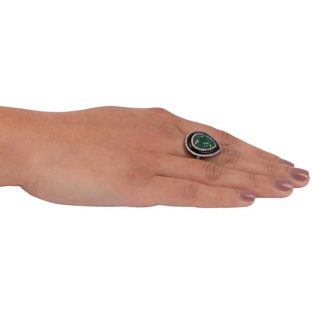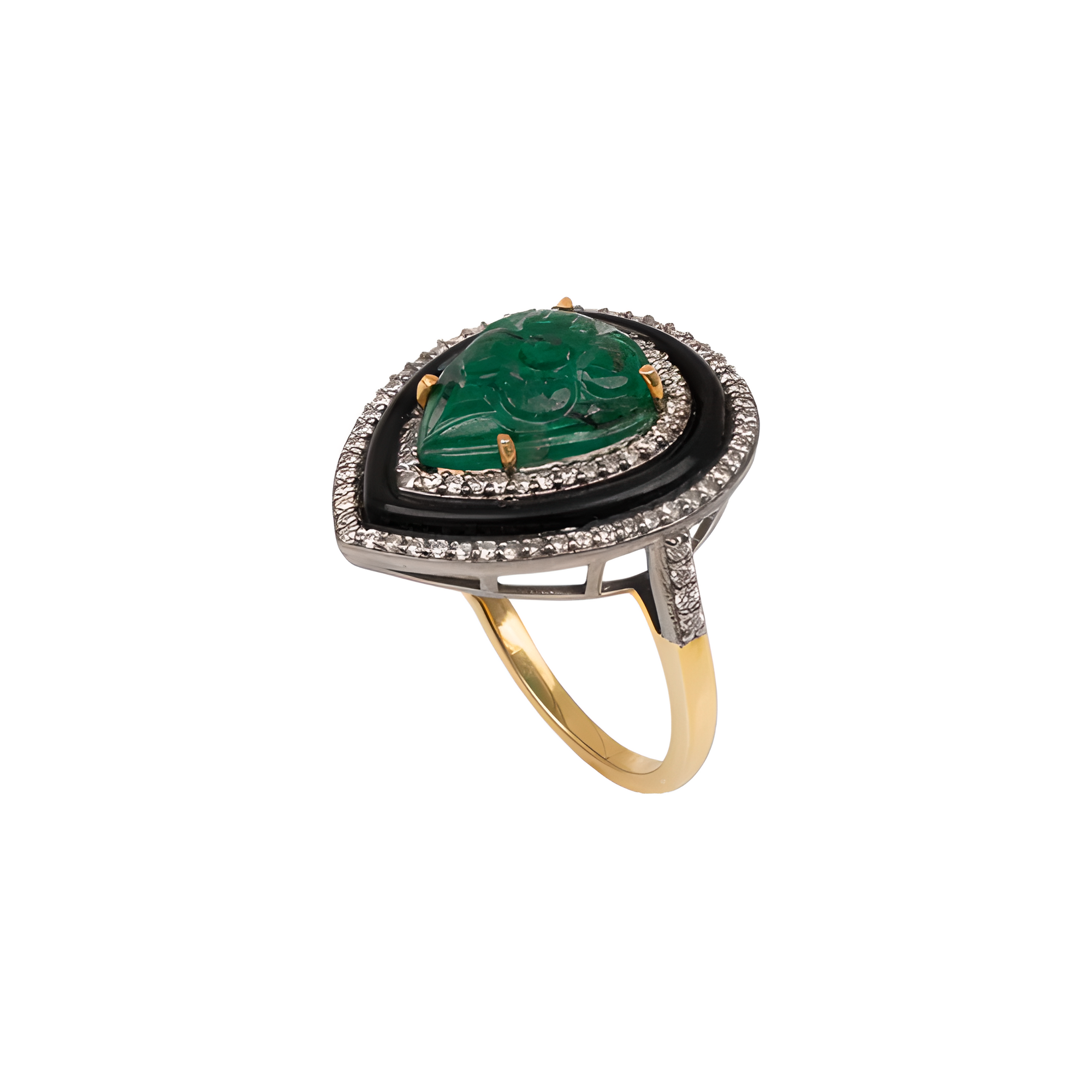 18kt Gold Plated Silver Emerald, Onyx, & Zircon Cocktail Ring