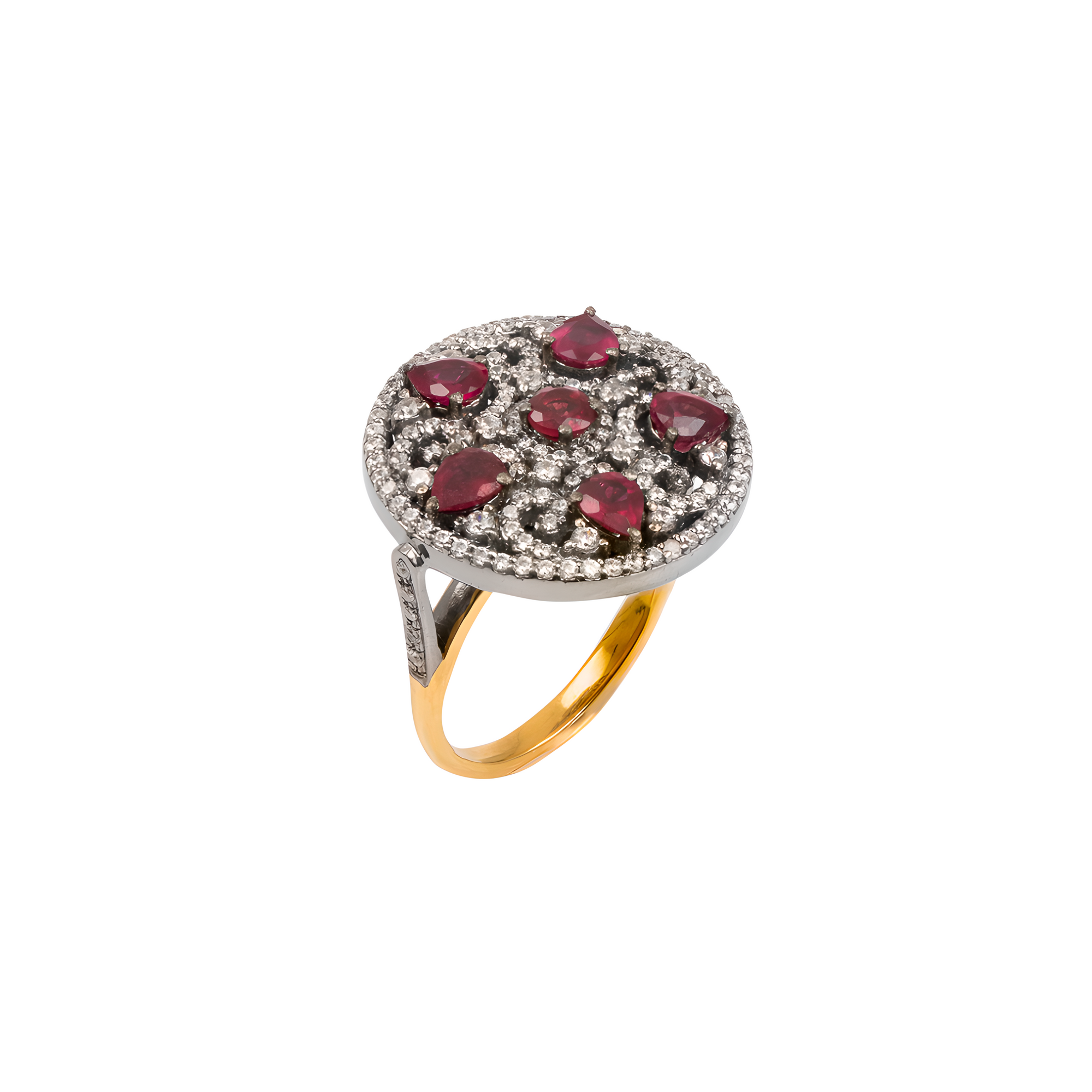 18kt Gold Plated Silver Ruby & Zircon Cocktail Ring