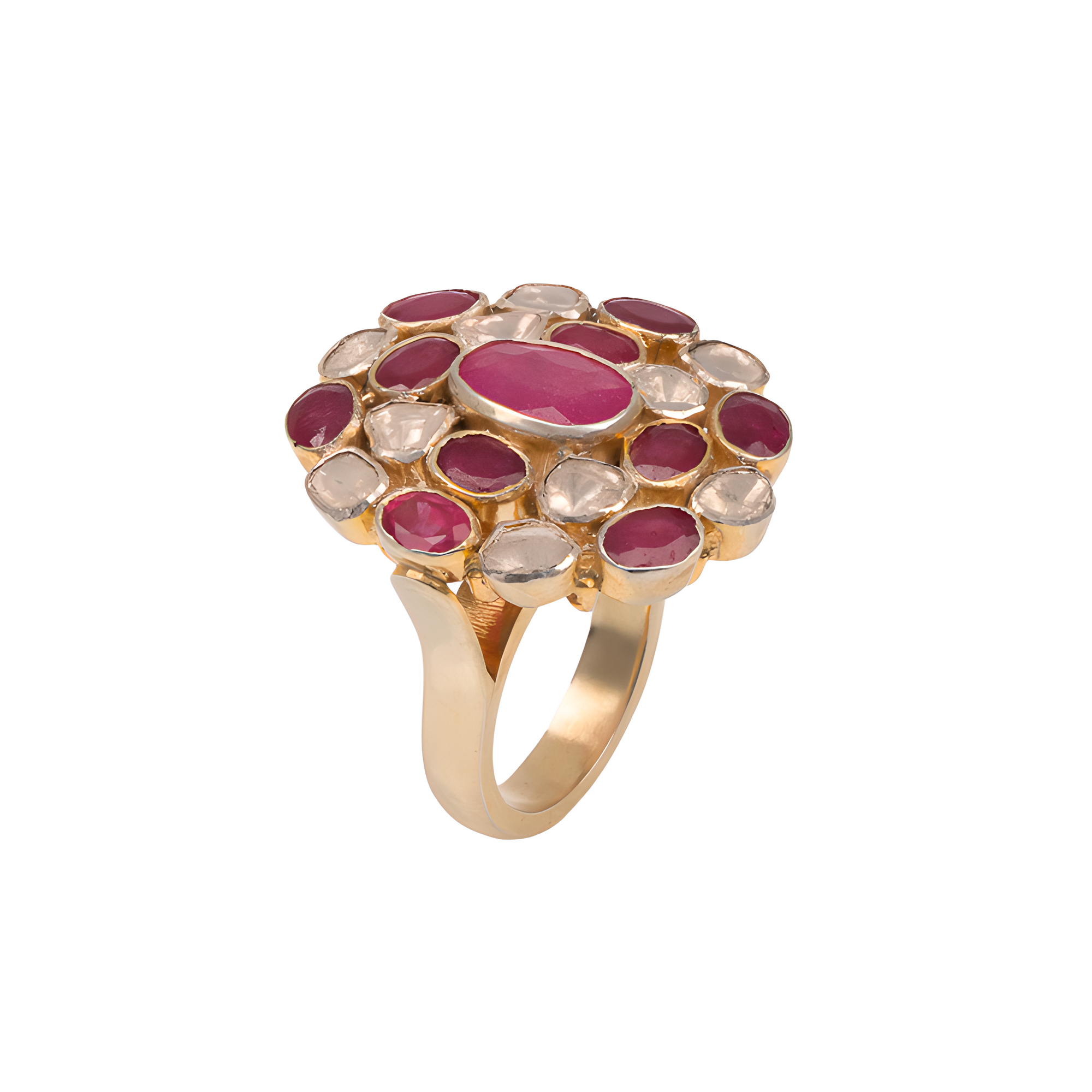 18kt Gold Plated Silver Ruby & Raw Diamond Cocktail Ring