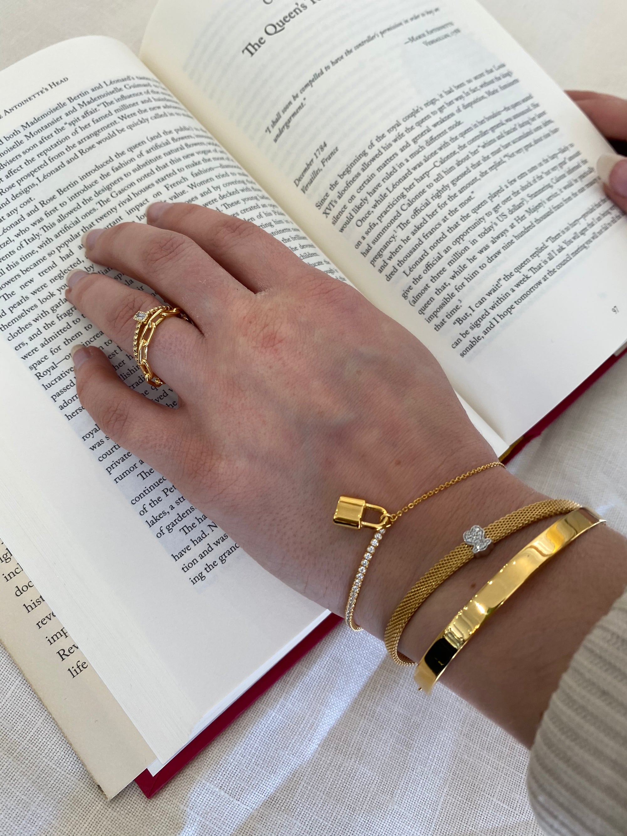 18kt Gold Plated Silver Pavé Semi Dome Ring