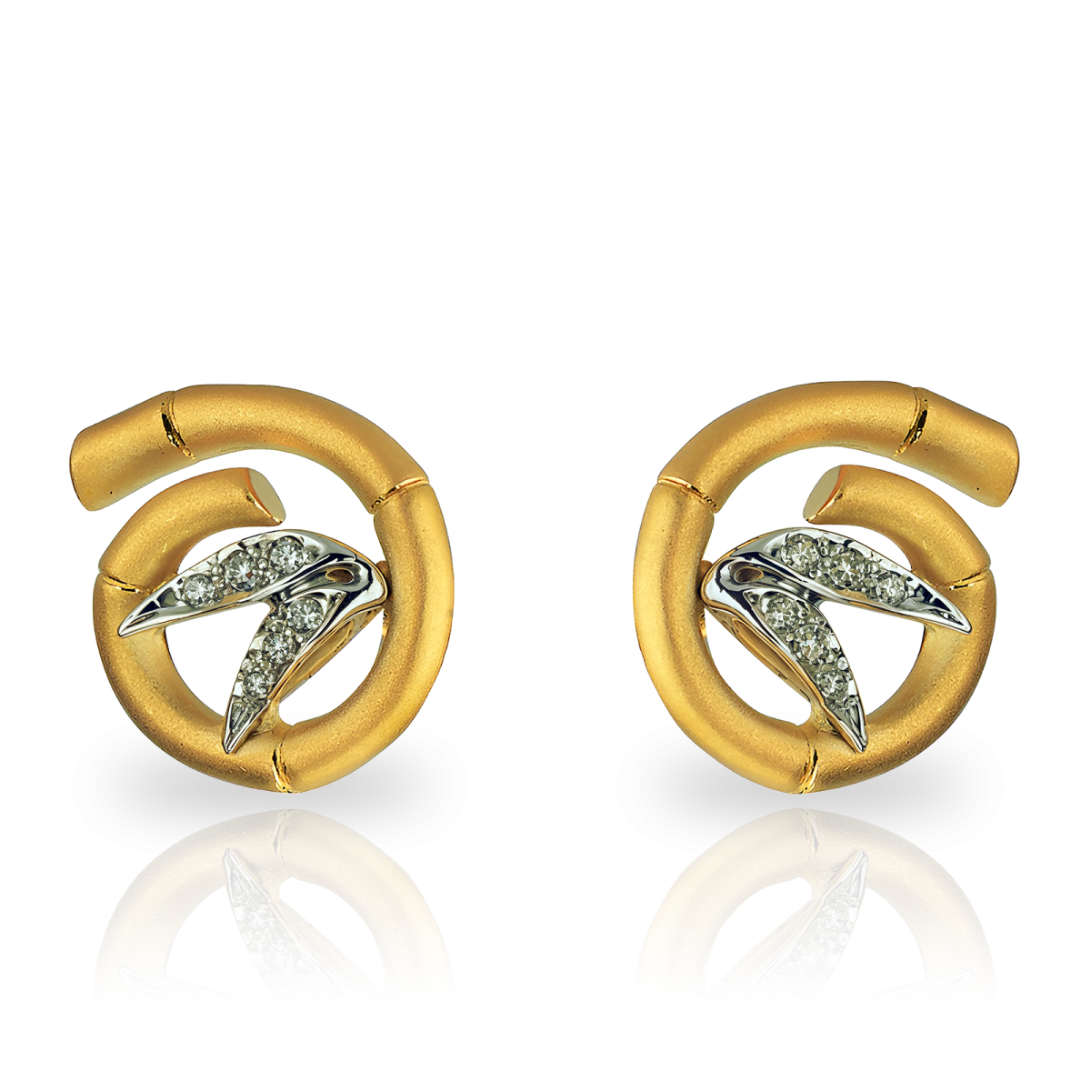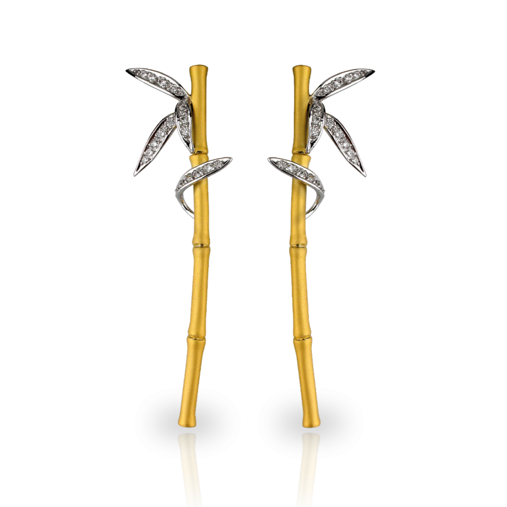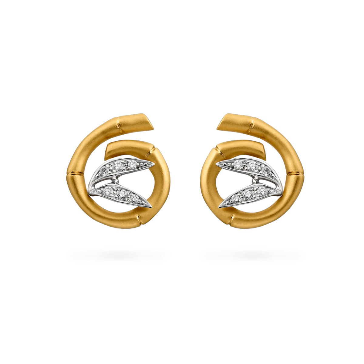 Carrera y Carrera 18kt Yellow & White Gold, Diamond Bambu Zen Earrings