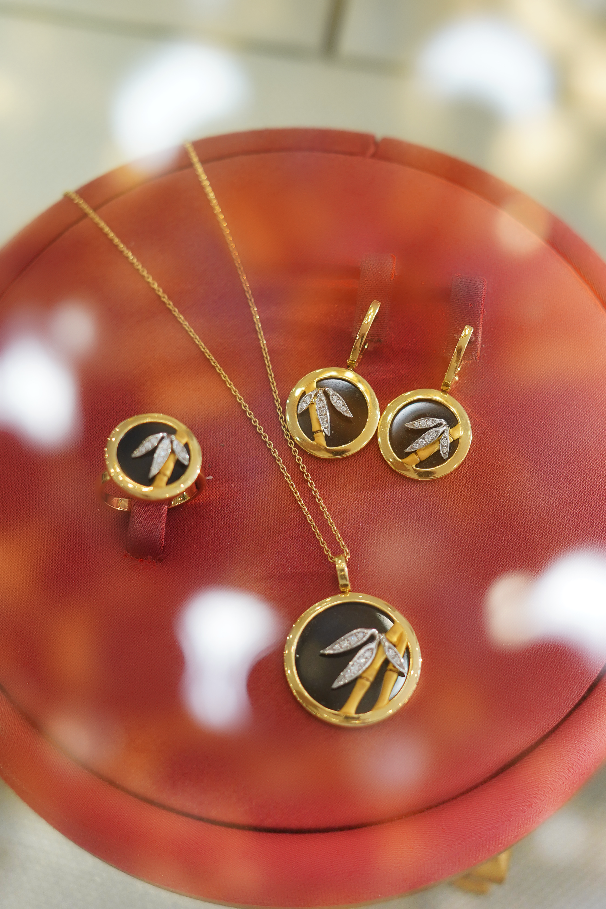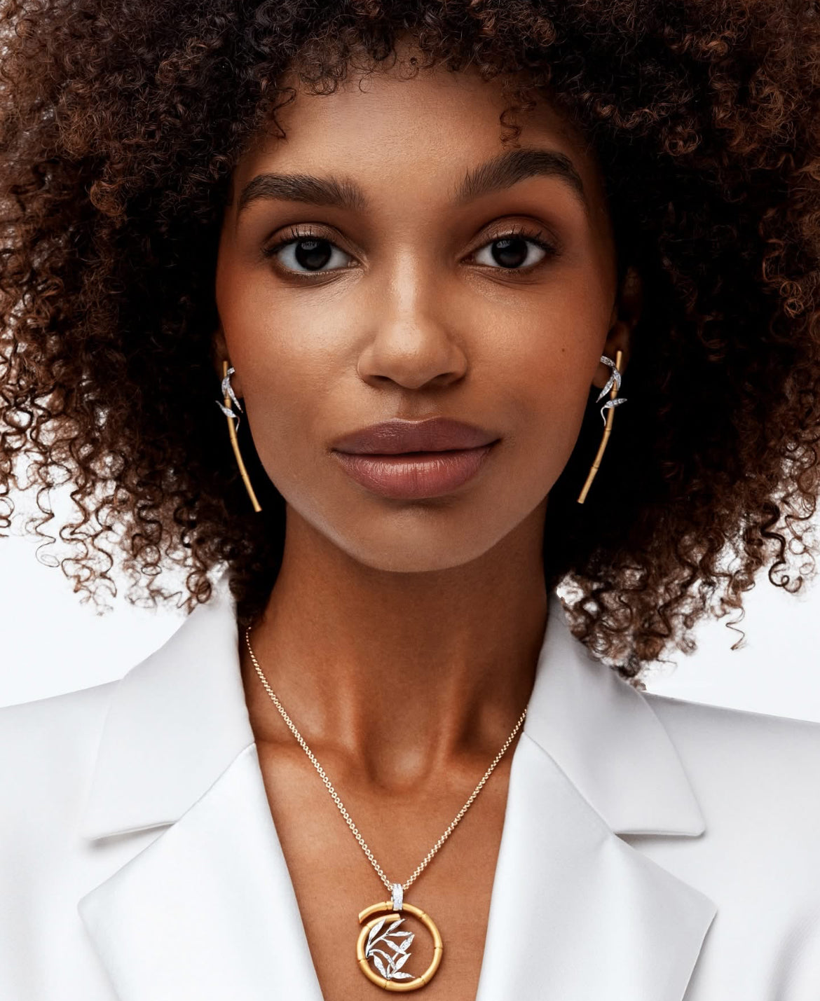 Carrera y Carrera 18kt Yellow & White Gold, Diamond Bambu Tao Mini Necklace
