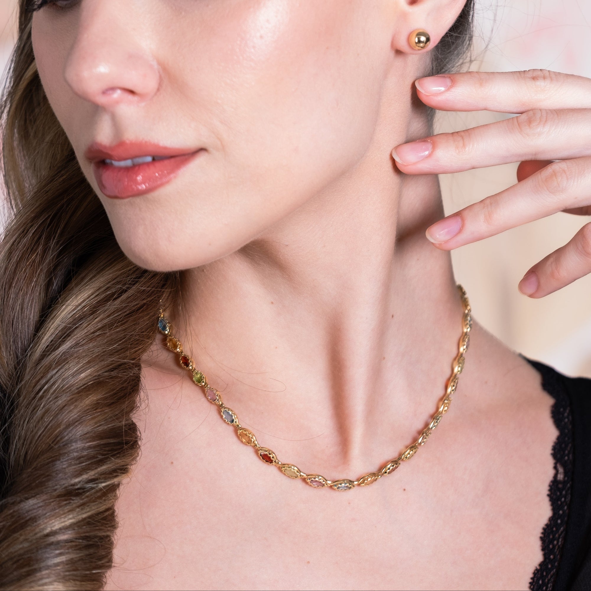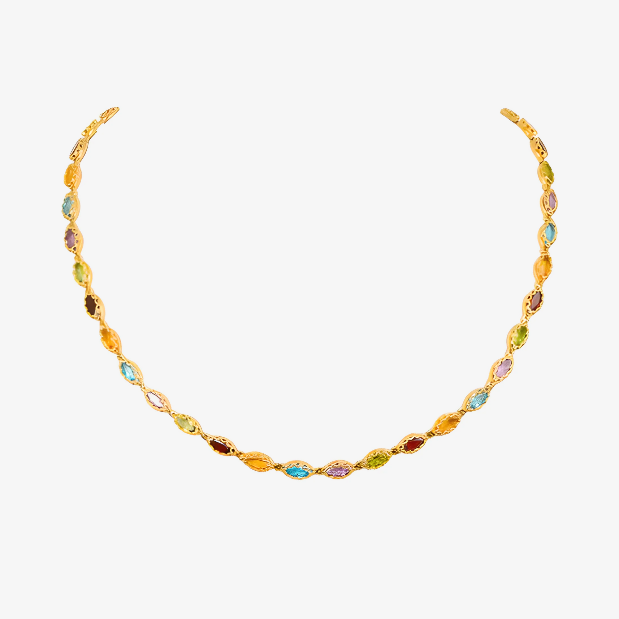 Multi Coloured Gemstone Necklace in 18kt Yellow Gold