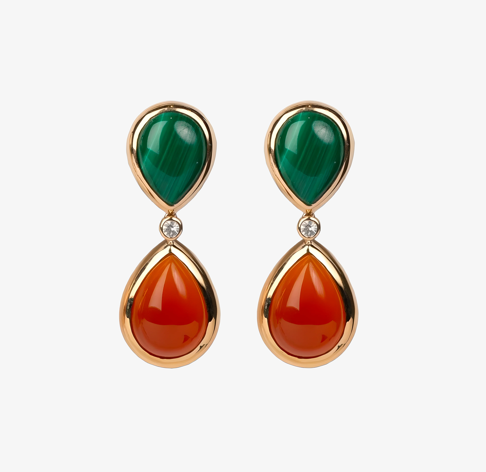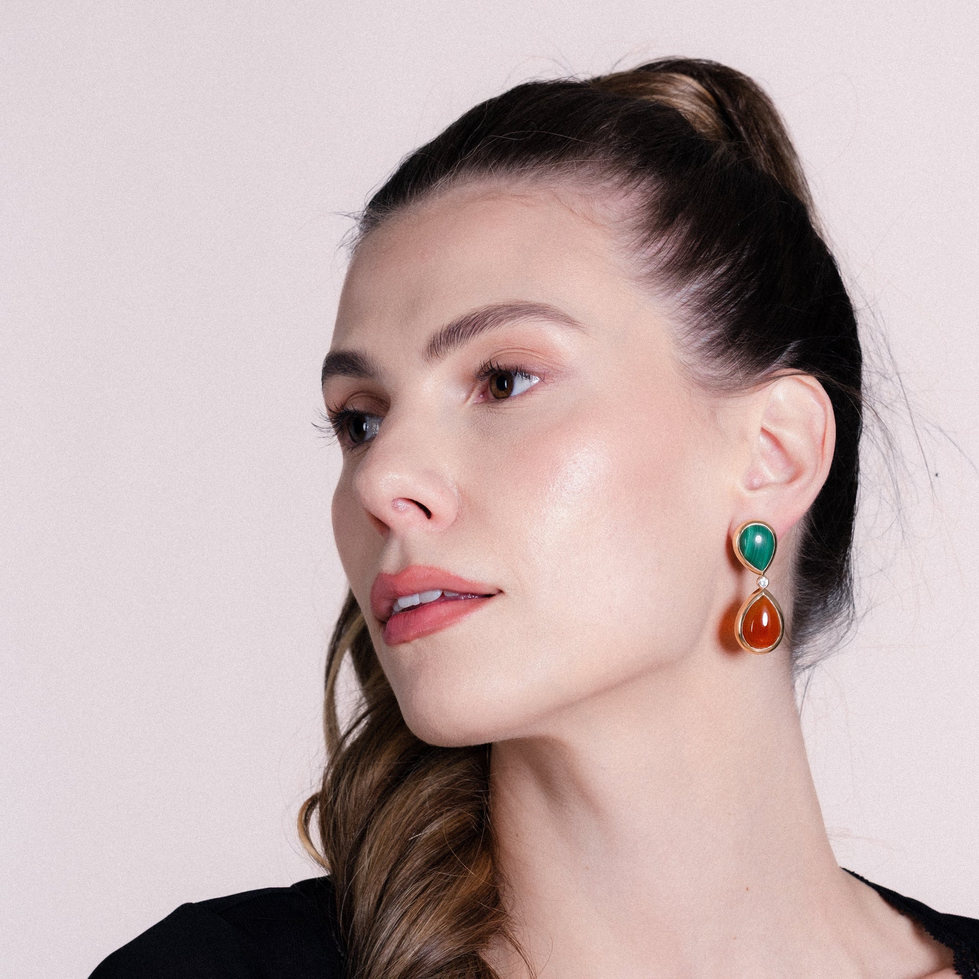 14KT Yellow Gold, Malachite & Carnelian Drop Earrings