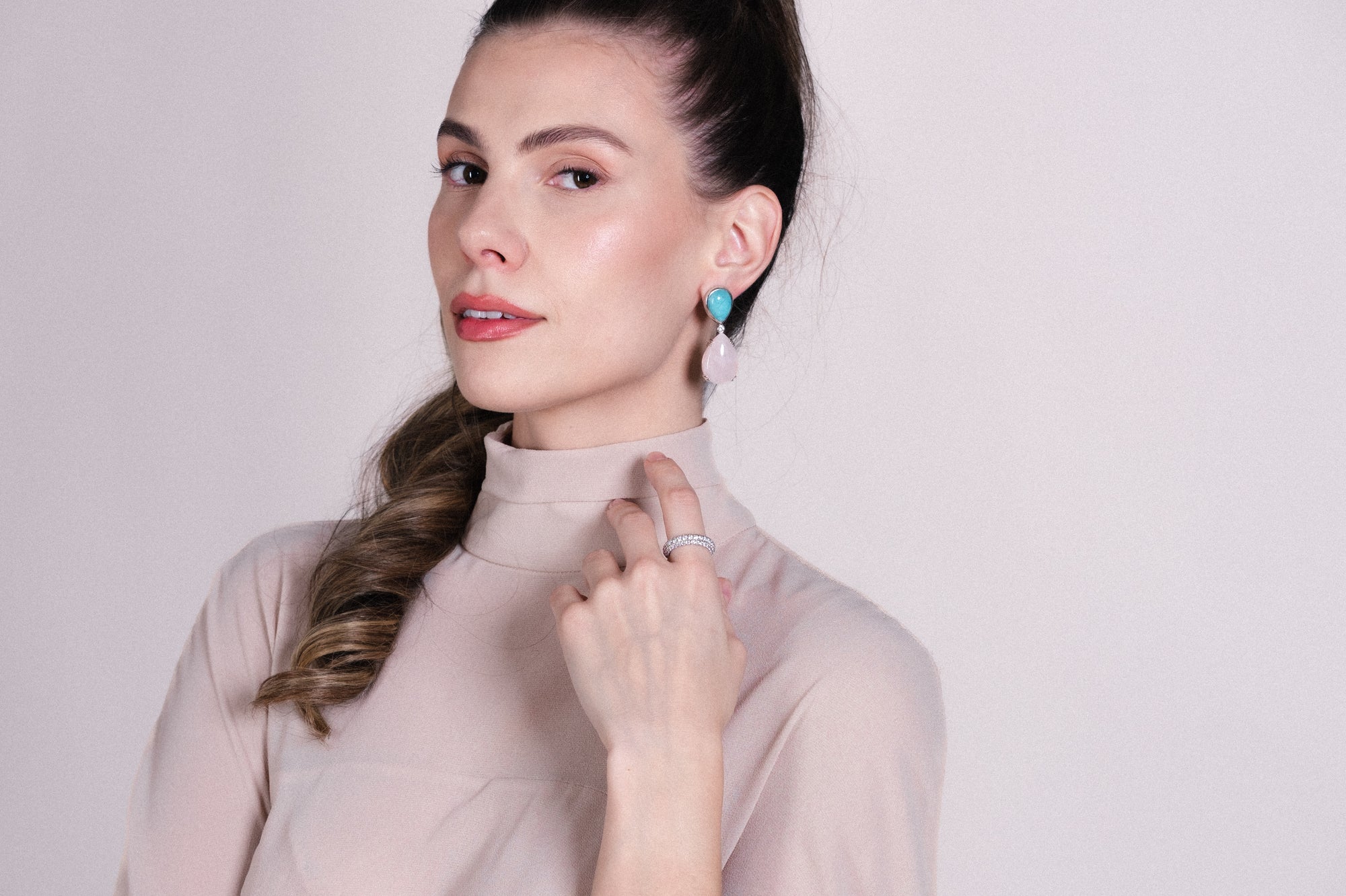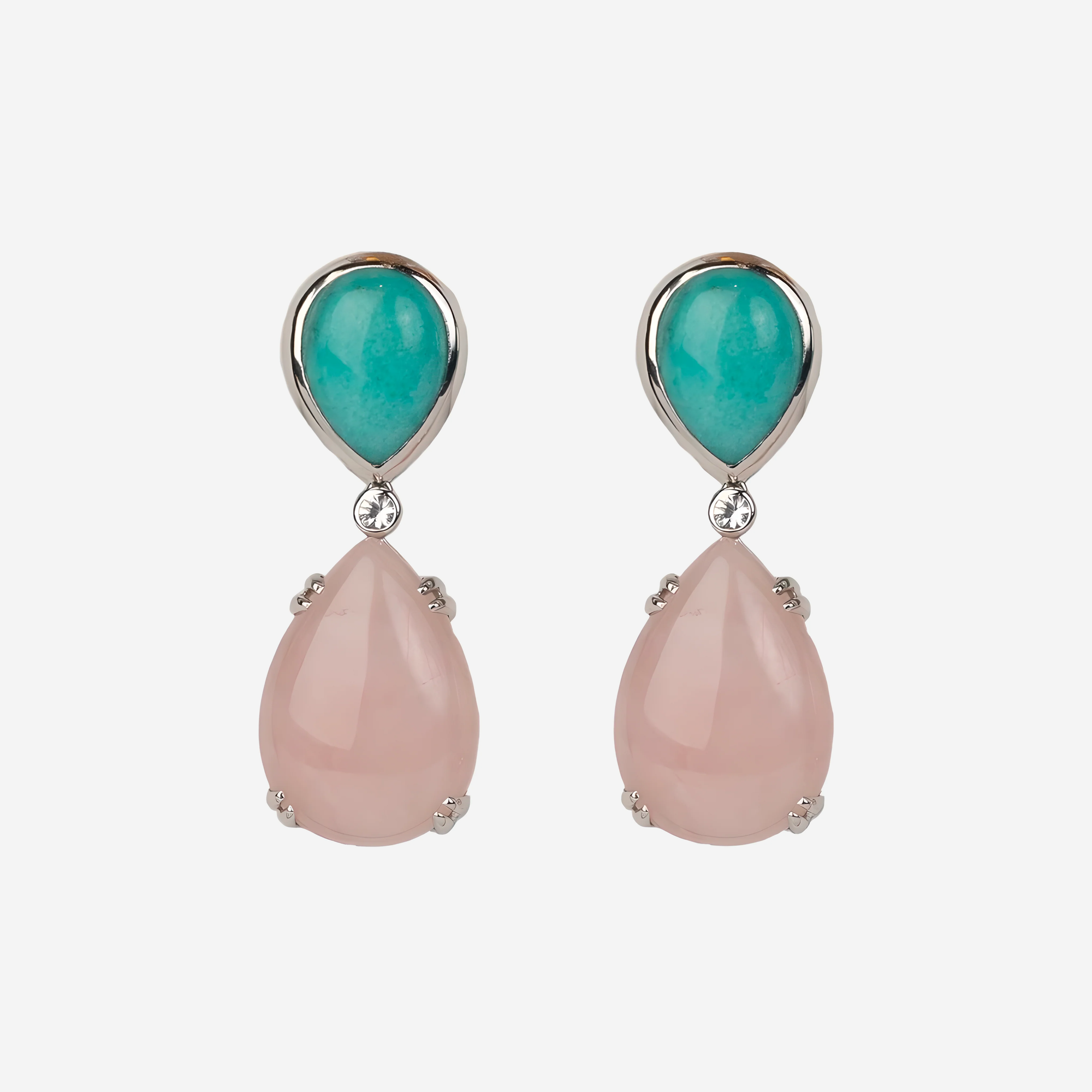 14kt Gold Amazonite & Rose Quartz Drop Earrings