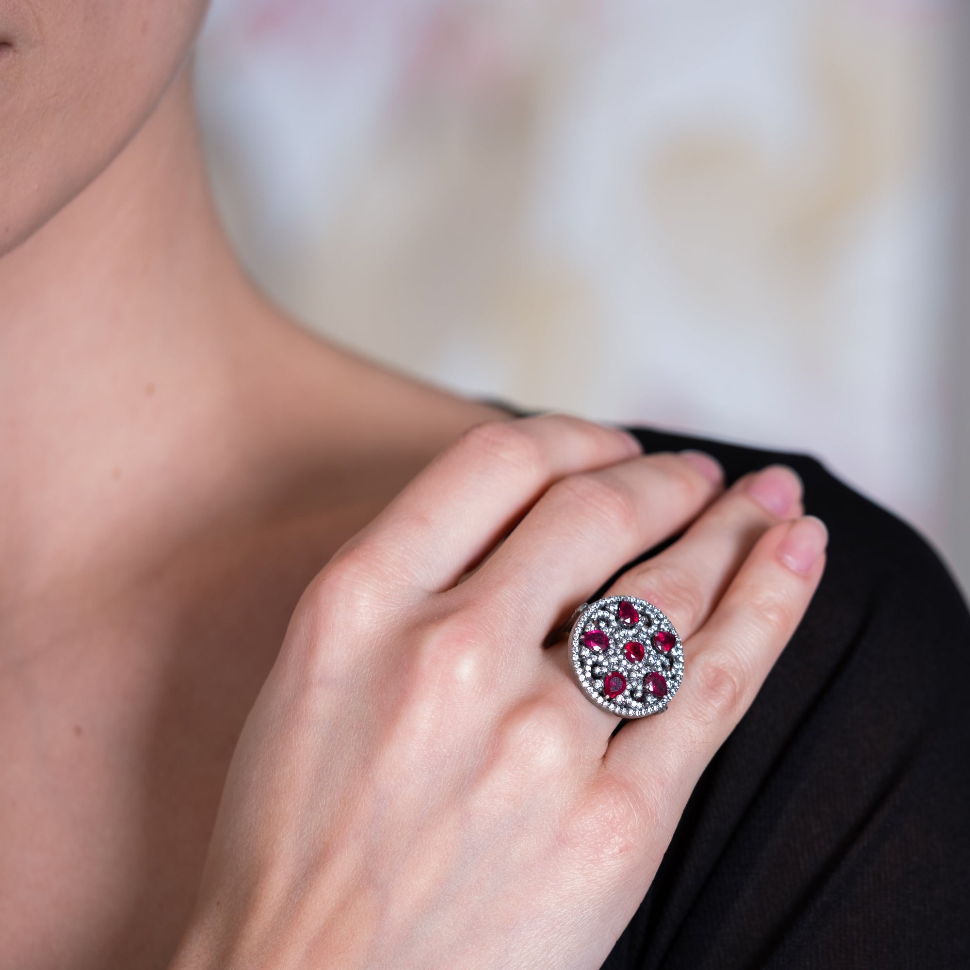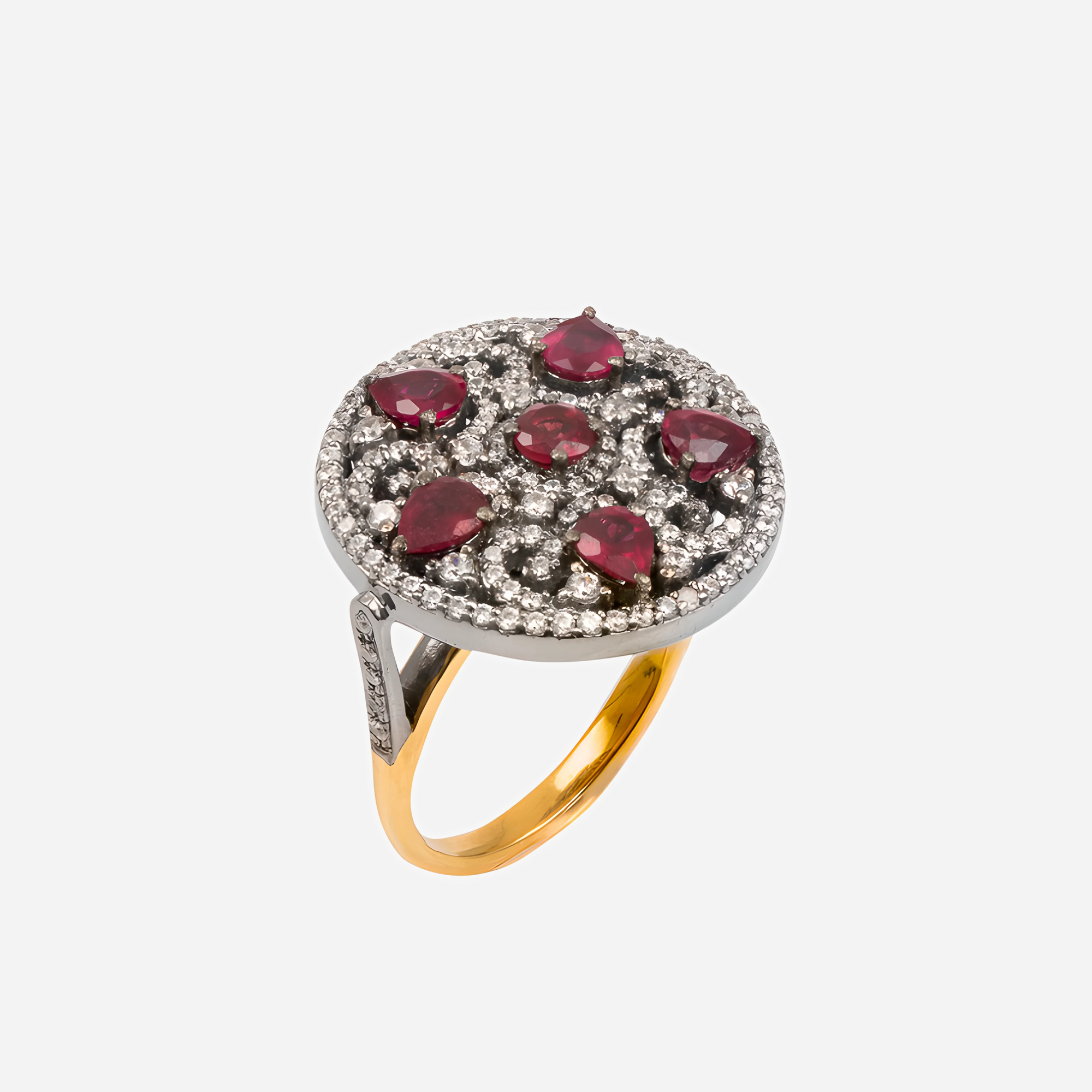 18kt Gold Plated Silver Ruby & Zircon Cocktail Ring