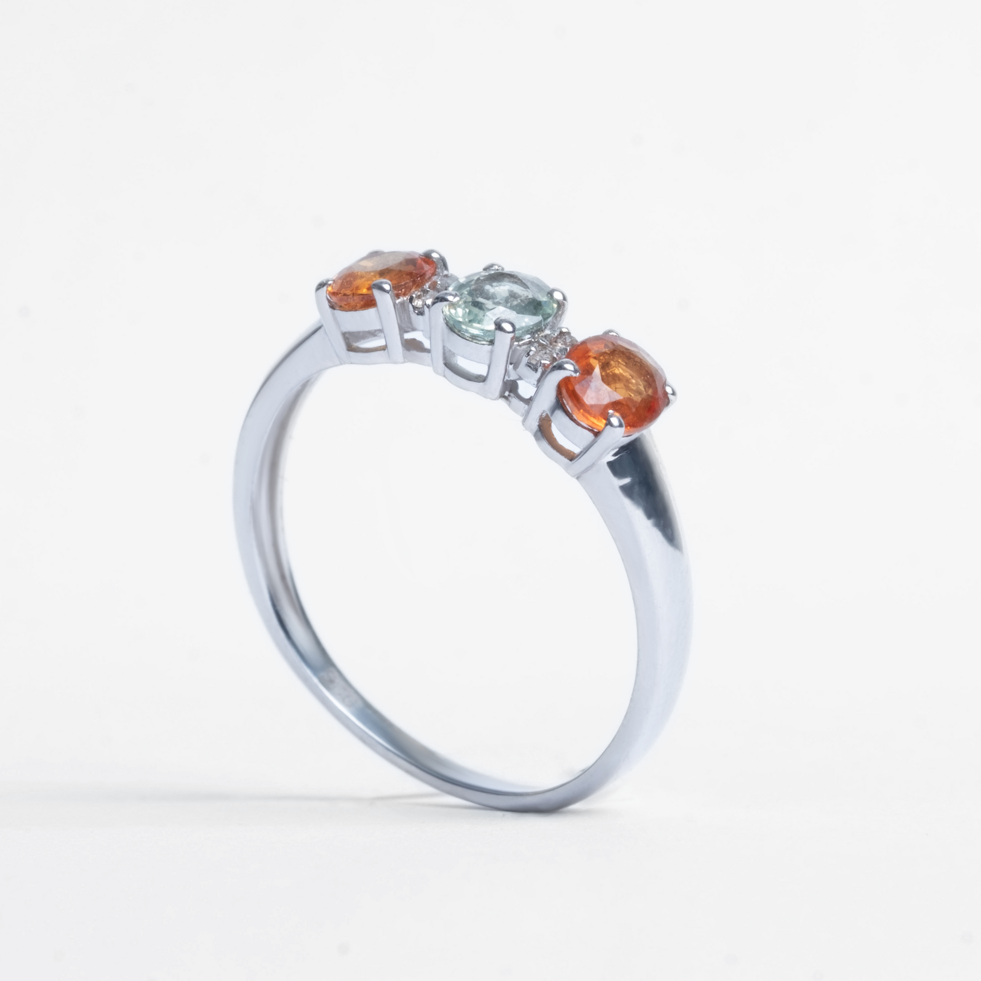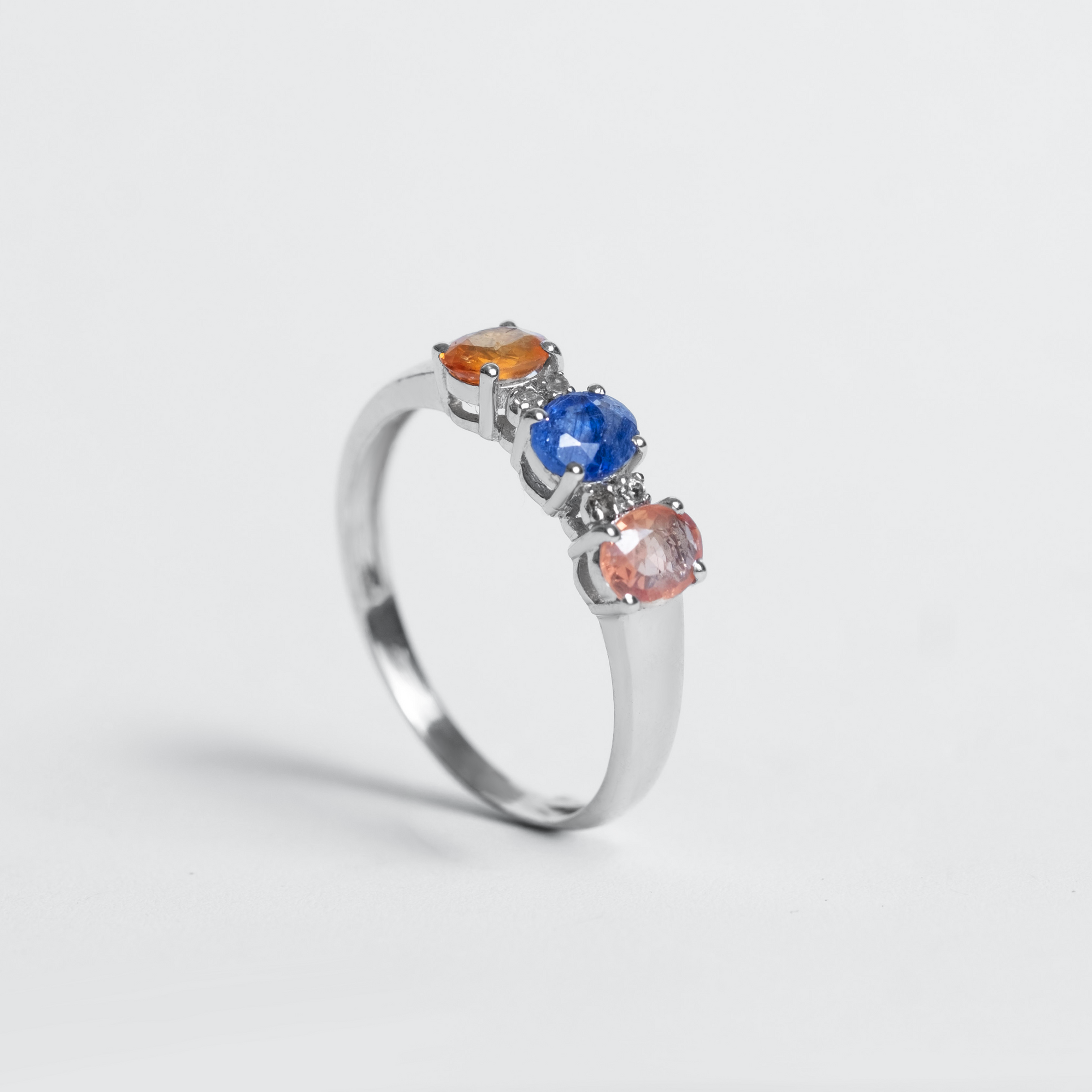 TOUS Vermeil Silver Half Alliance Ring with Glaring Multicoloured Sapphires