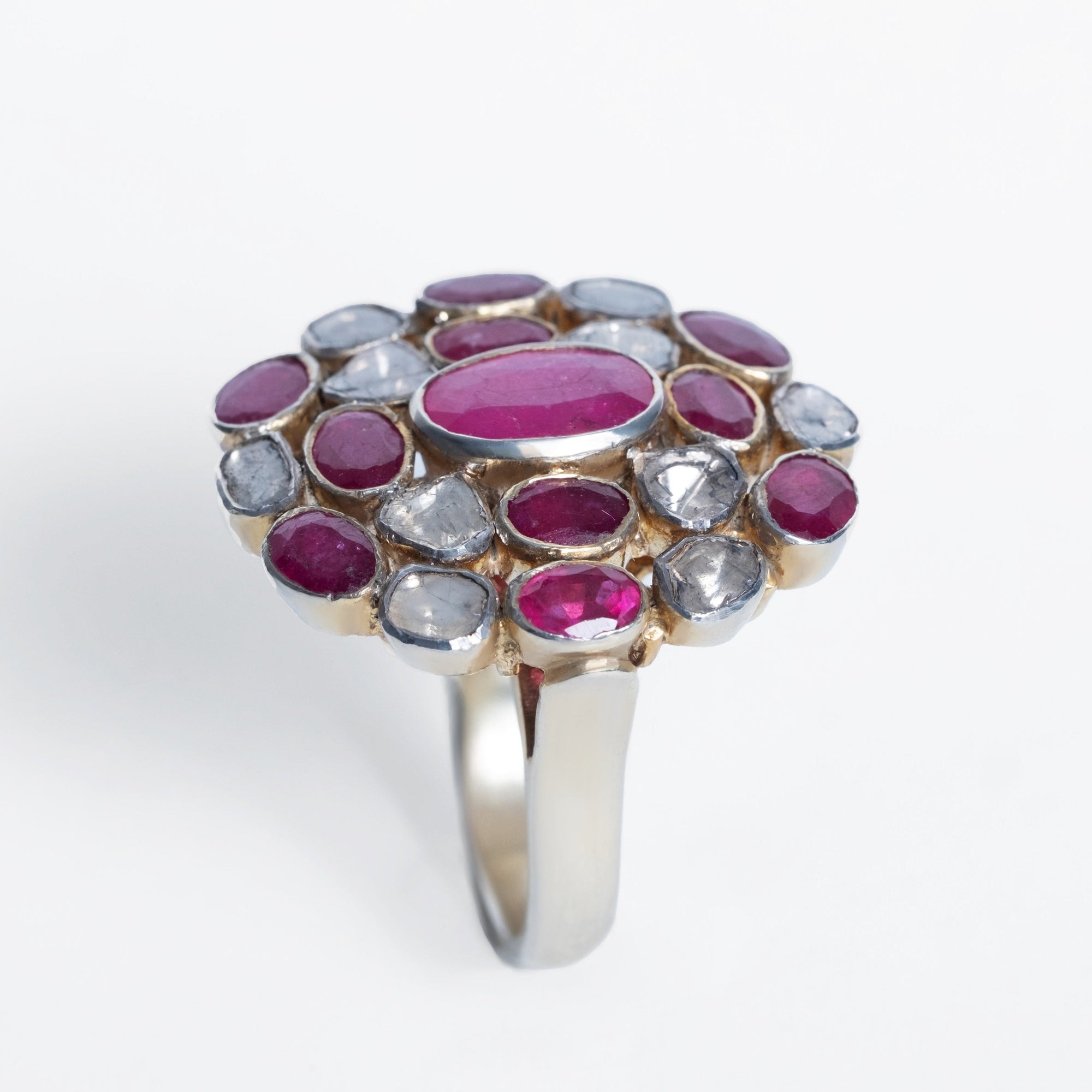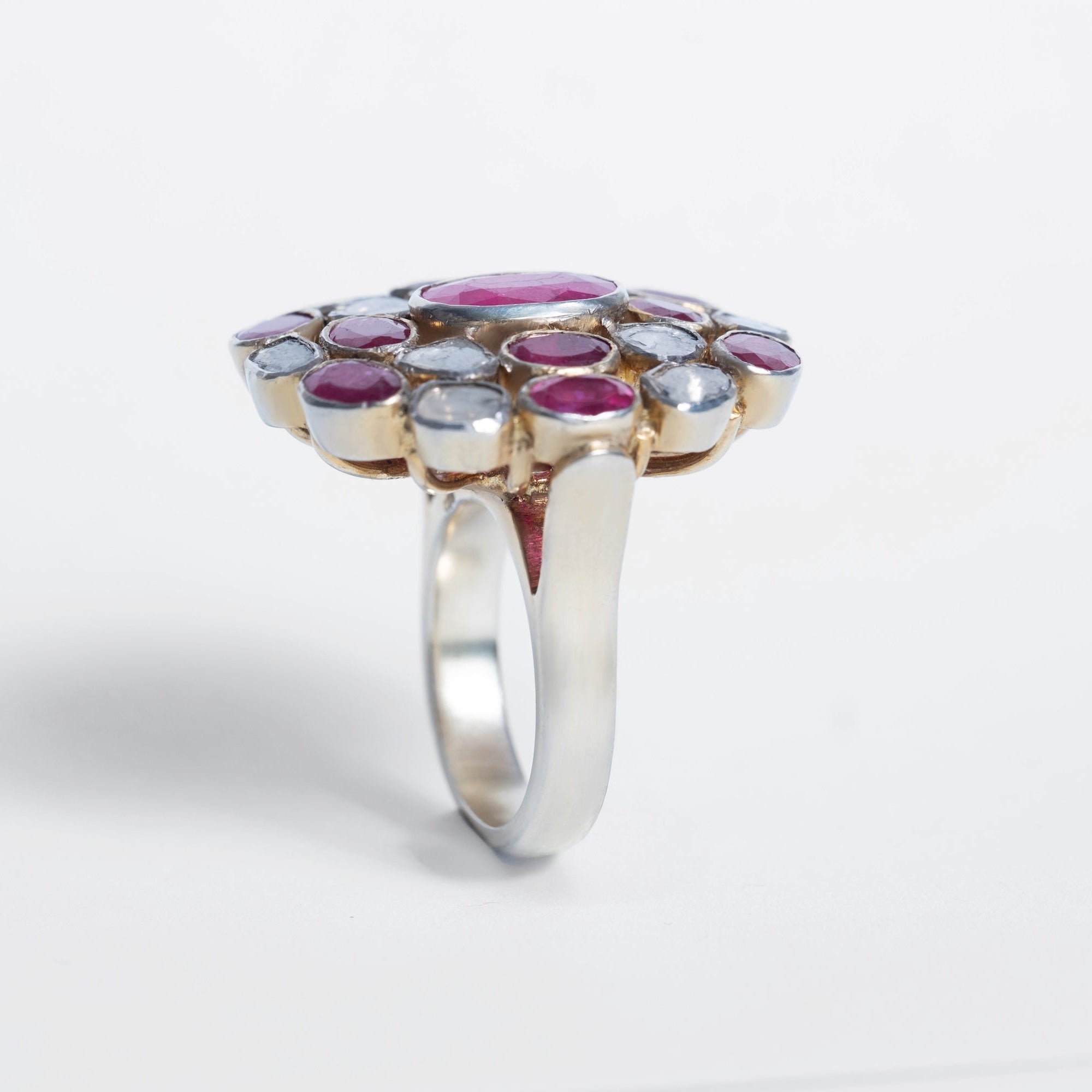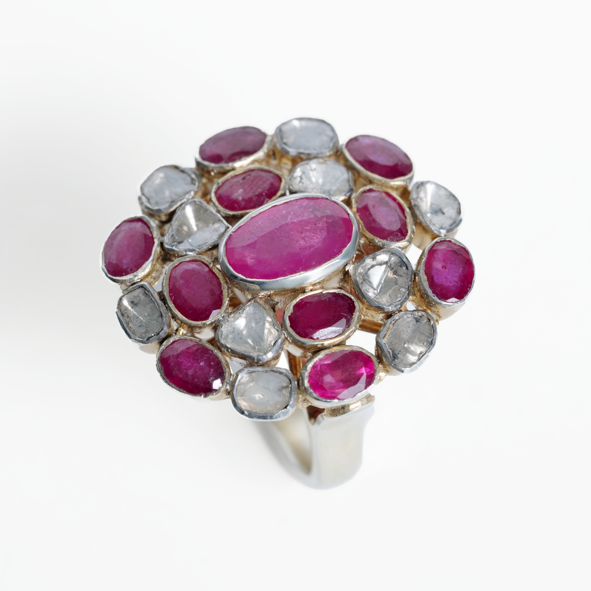 Ruby & Raw Diamond Cocktail Ring (18kt gold plated silver)