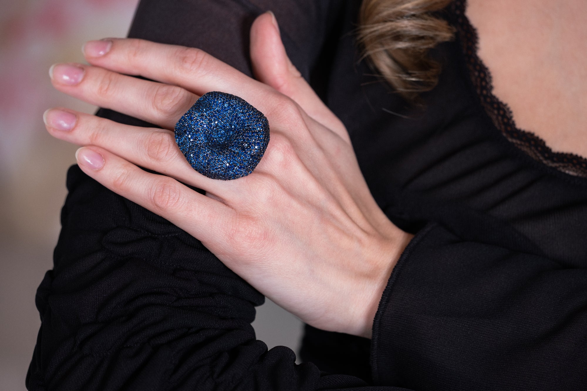 TOUS Vermeil Silver Half Alliance Ring with Glaring Multicoloured Sapphires