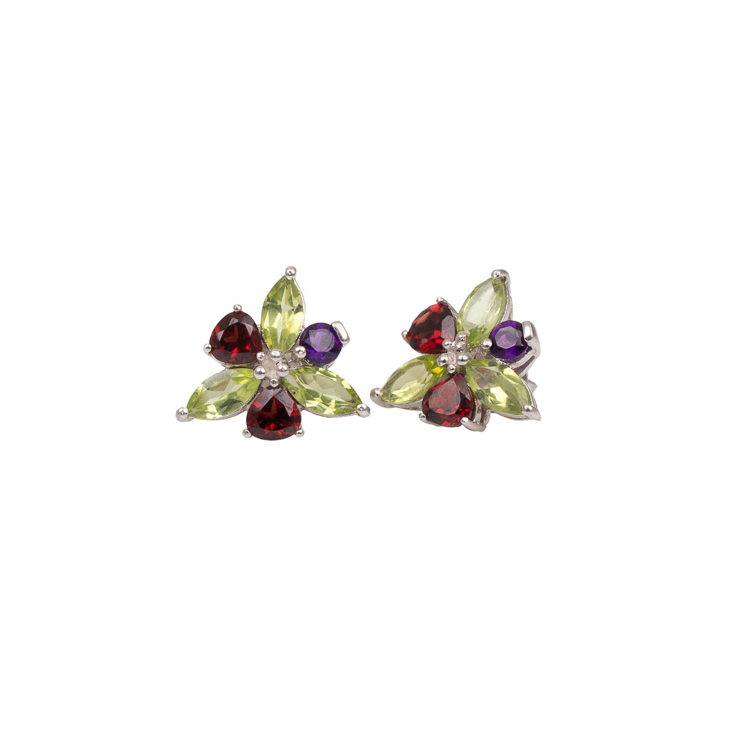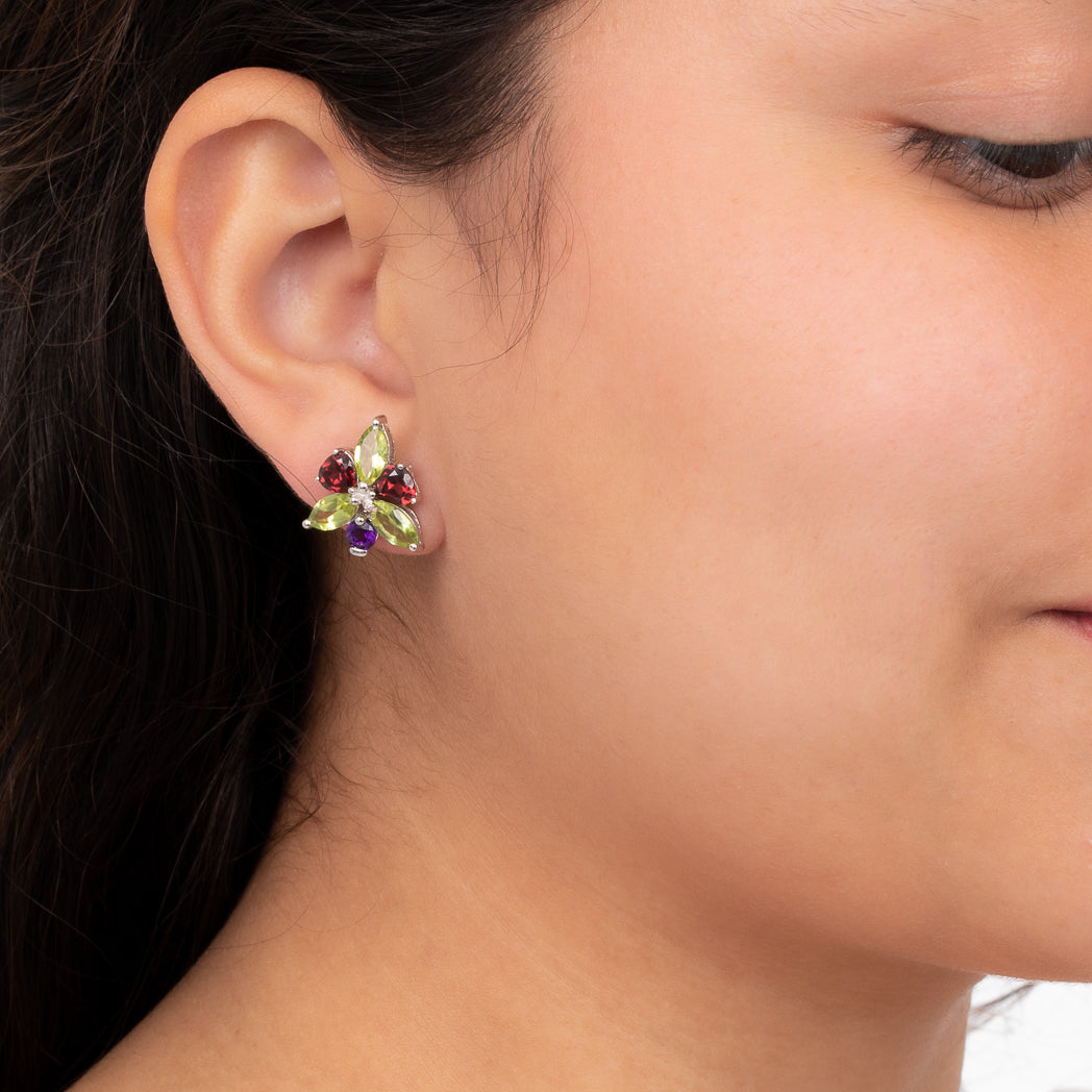 Les Néréides Blueberry, White Flower and Firefly Post Earrings