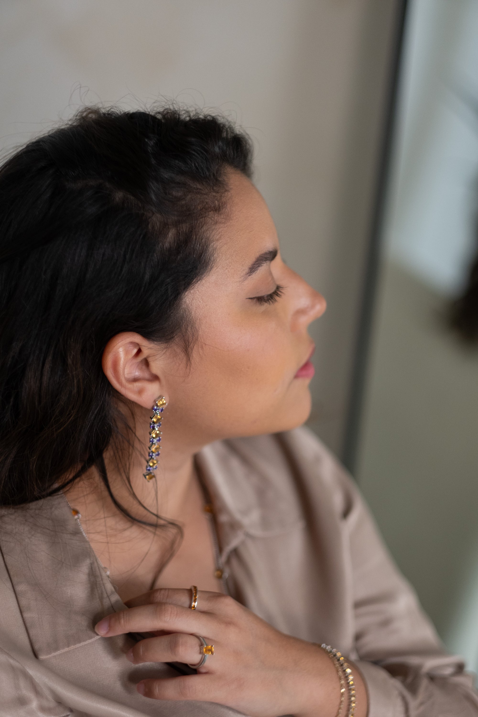 Les Néréides Blueberry and Round Cut Stone Post Earrings