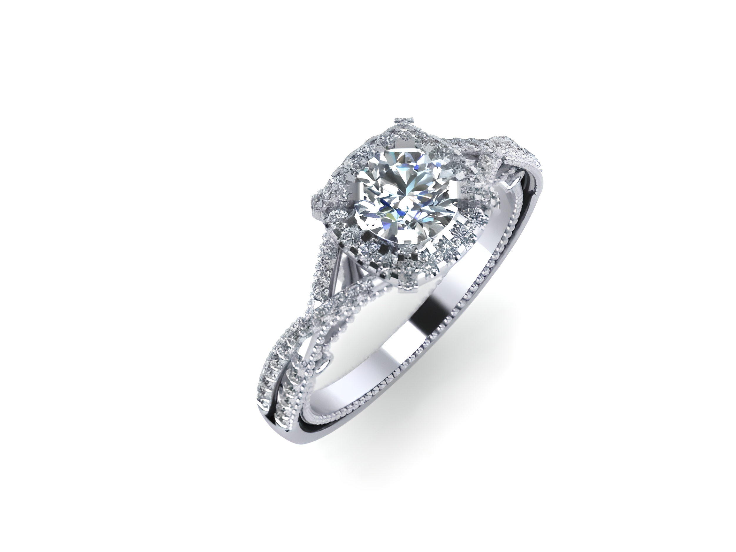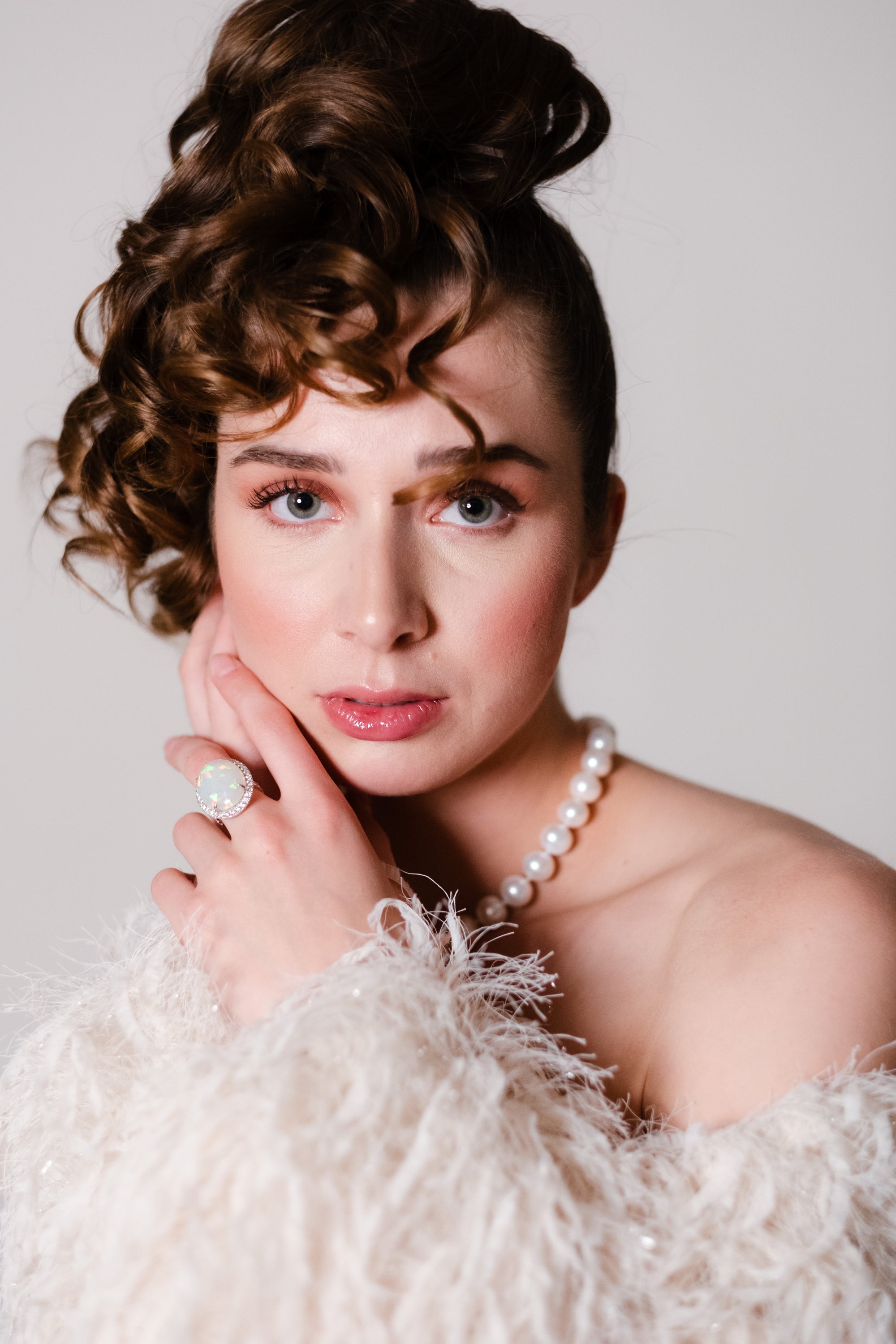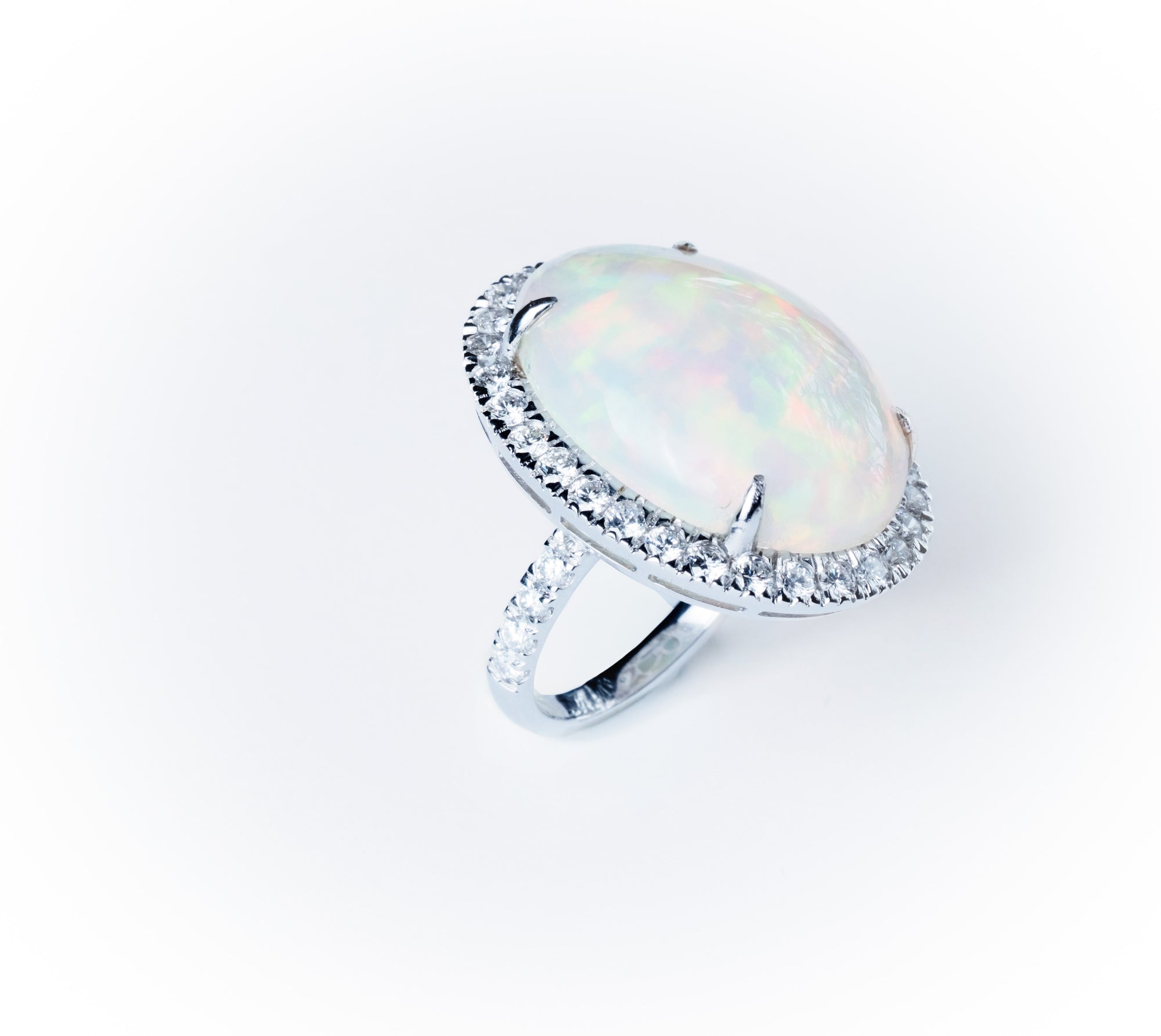 custom-made opal ring, set in 18k white gold and encrusted with diamonds